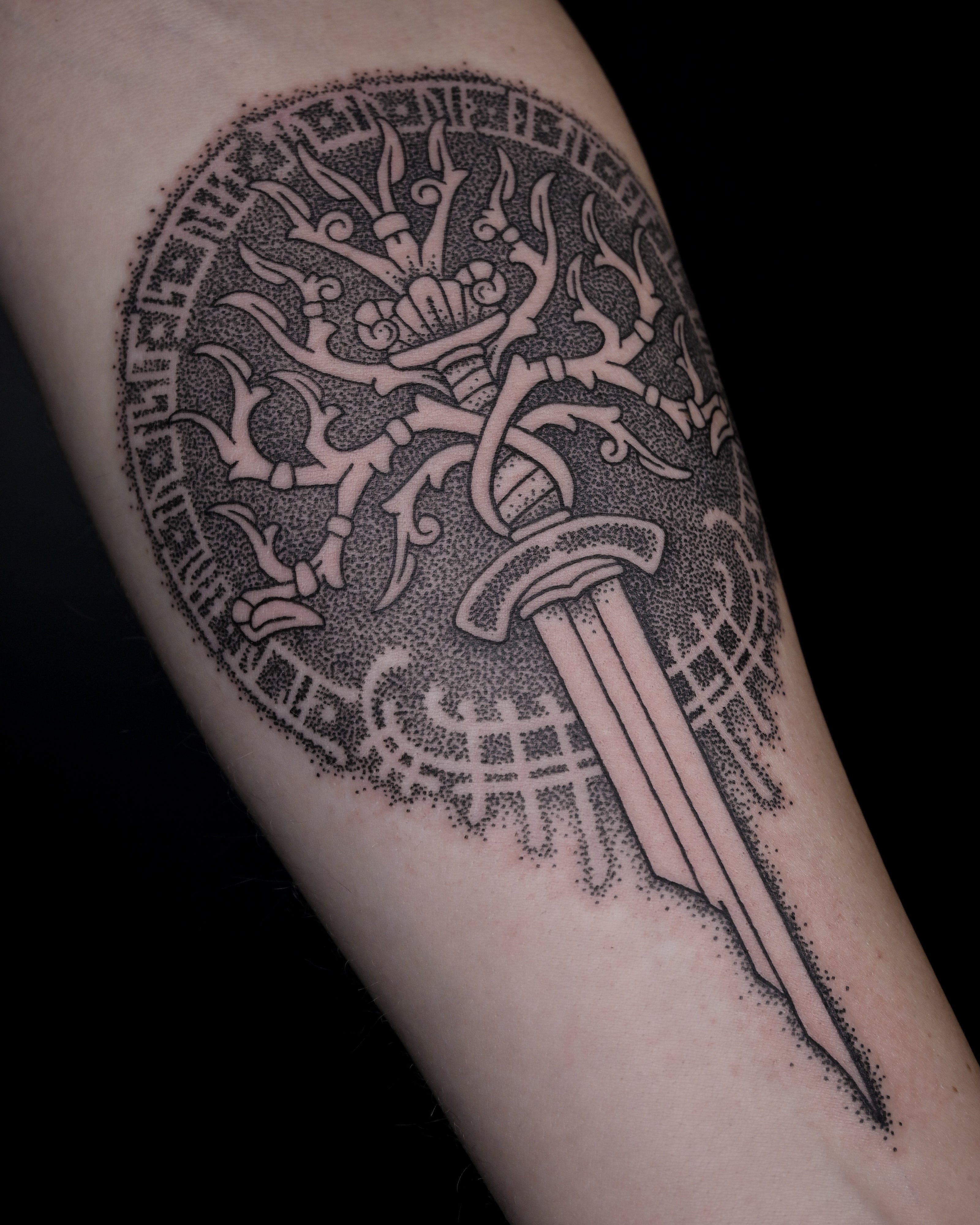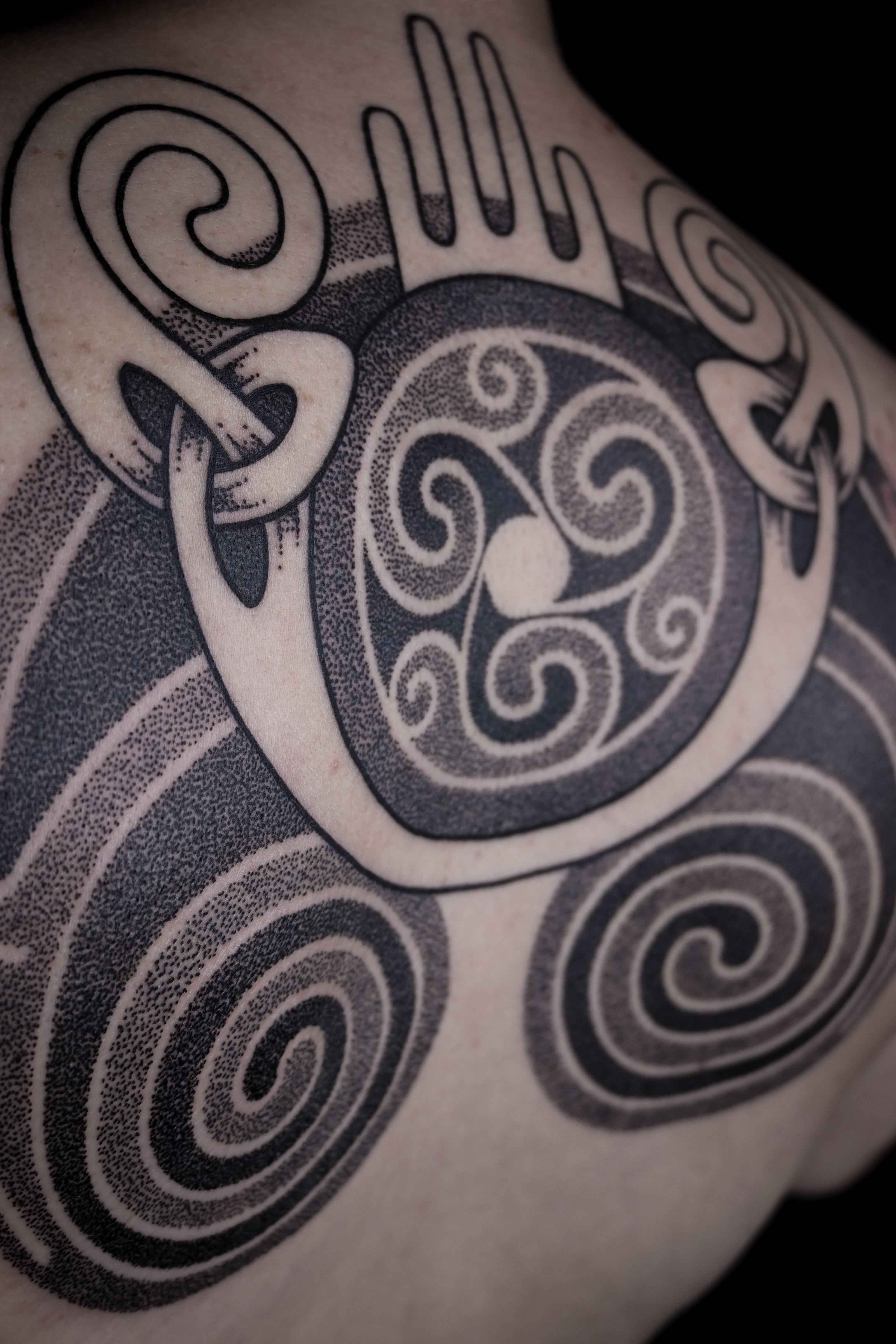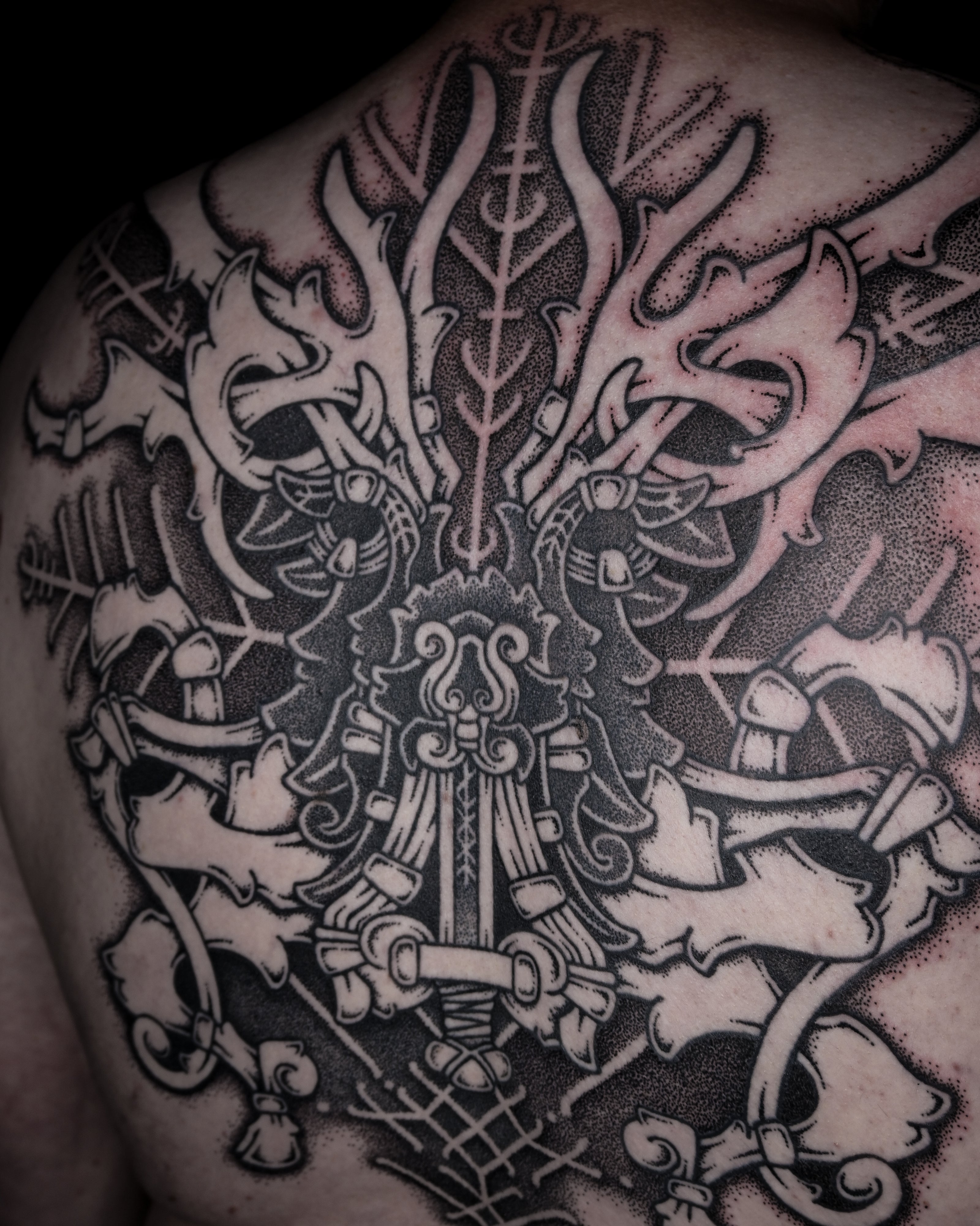 A Pagan tattoo artist and the owner of Kintyre Ink Tattoo. I'm best known for my expertise in large-scale ornamental Nordic and Celtic tattoos. I specialize in traditional dotwork techniques and Viking-age inspired ribbon art.